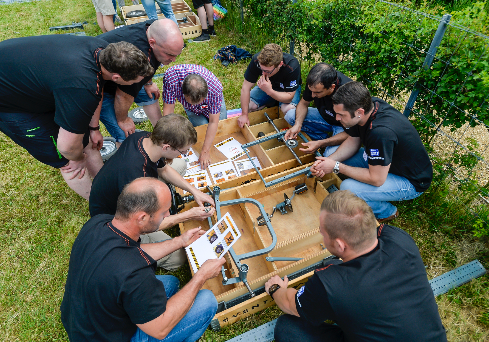 Elk team beschikt over hetzelfde materiaal voor het bouwen van de racewagen. In de shop vinden de deelnemers extra materiaal om de bolide te decoreren. De teams krijgen maximaal 4 uur de tijd om hun racewagen te bouwen aan de hand van een fotohandleiding. Vooraleer de echte race begint, worden de wagens gekeurd op stevigheid en veiligheid. Ready, set, go!